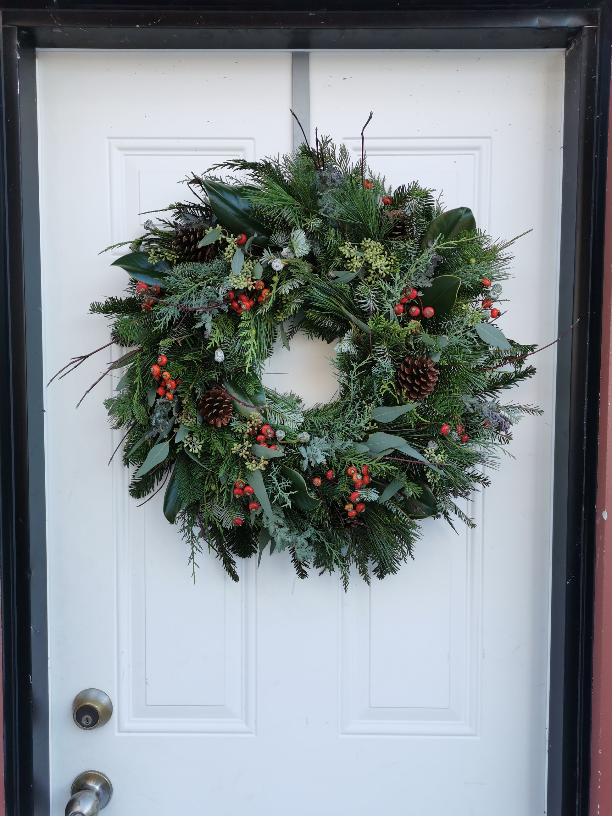 Decorate for the holiday with one of our classic, fresh Christmas wreaths. These wreaths are hand-designed and are packed full of freshly grown BC winter greens such as fir, pine, cedar and hemlock. Your chosen colour and design palette will determine the variety of decorations and additional greenery used in your wreath.