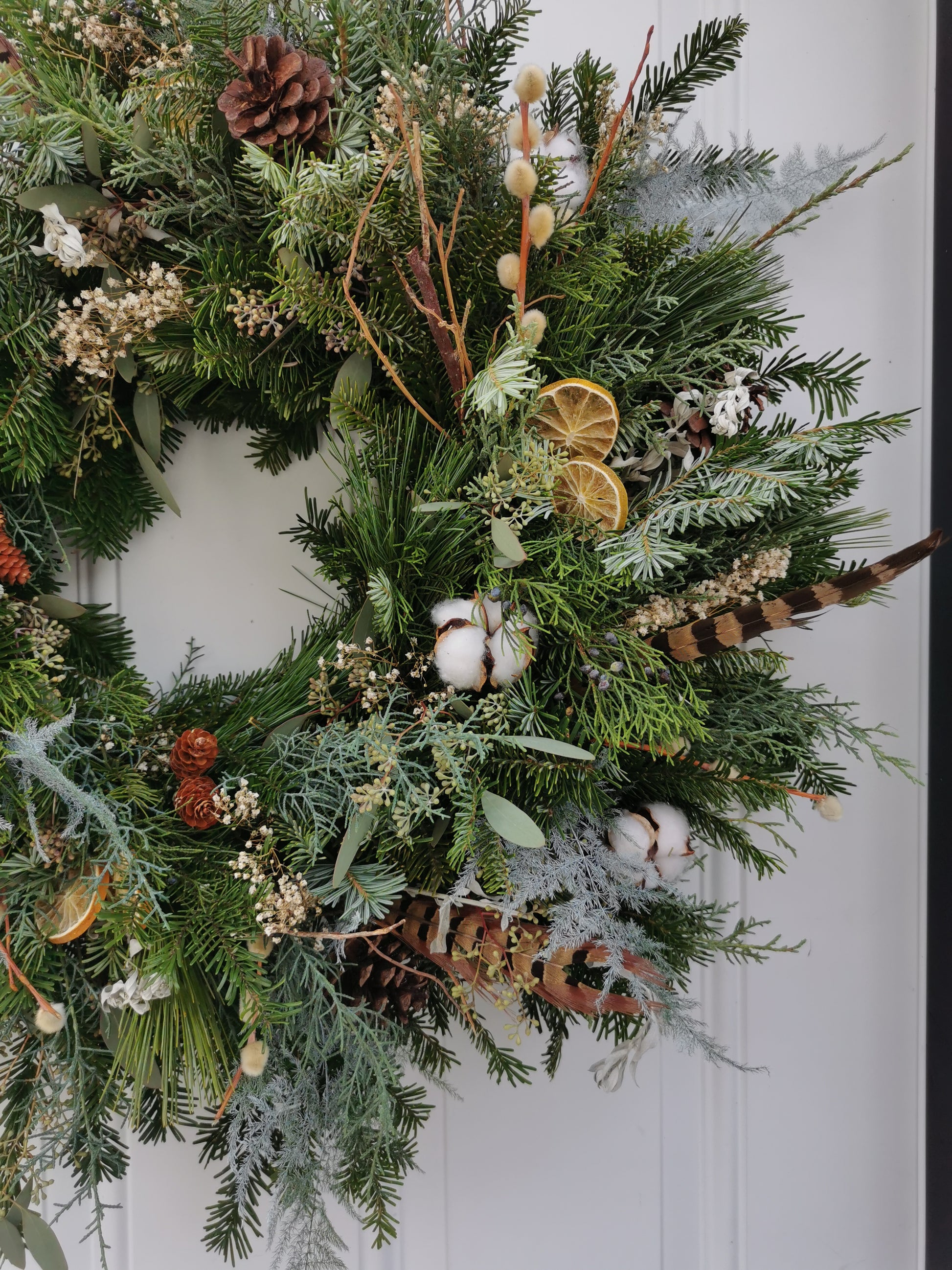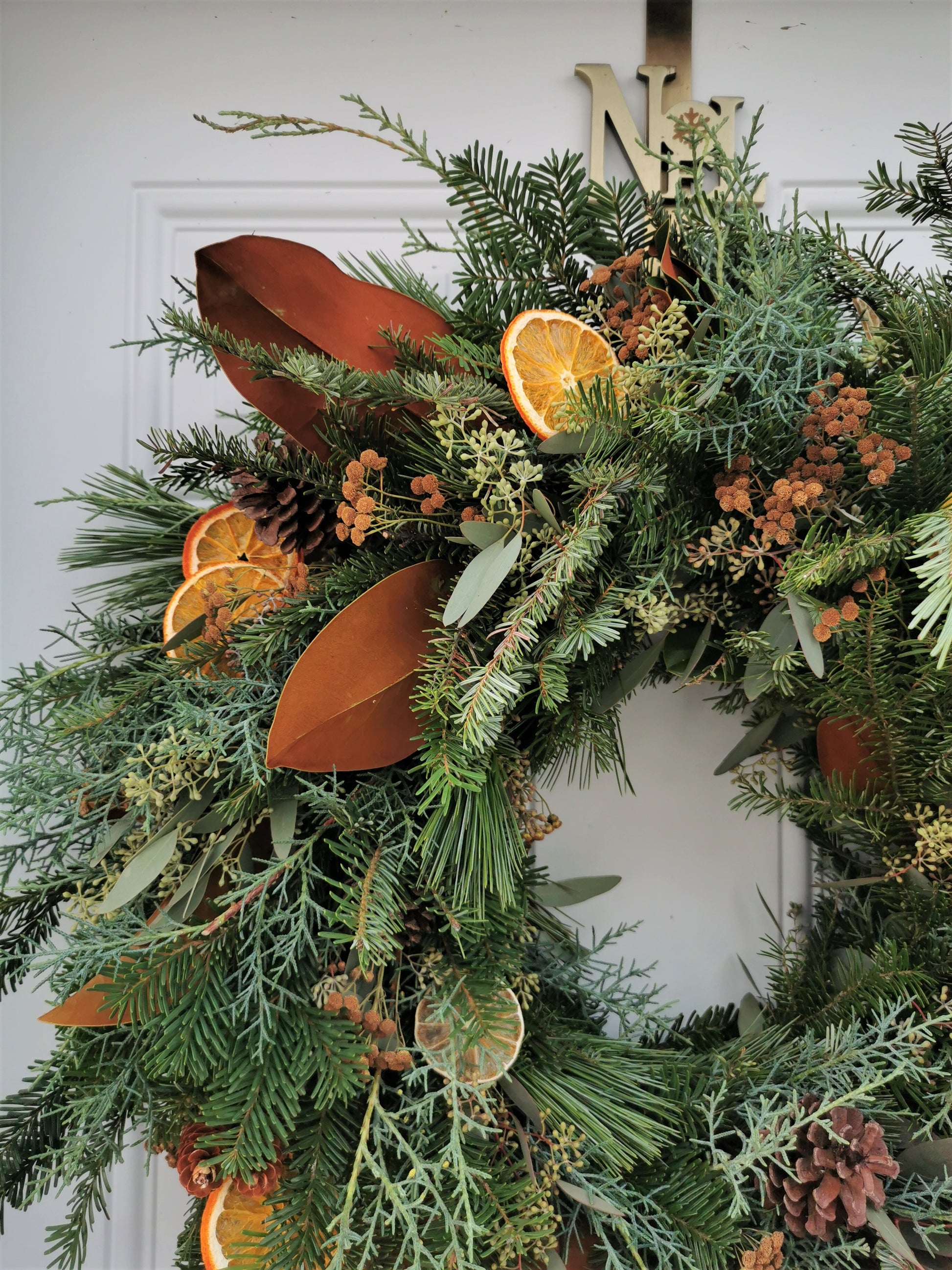 citrus | a wreath that focuses on the addition of a variety of dried citrus fruit such as oranges, limes and lemons, magnolia is often included in this wreath style as its rust toned leaves pair beautifully with dried citrus