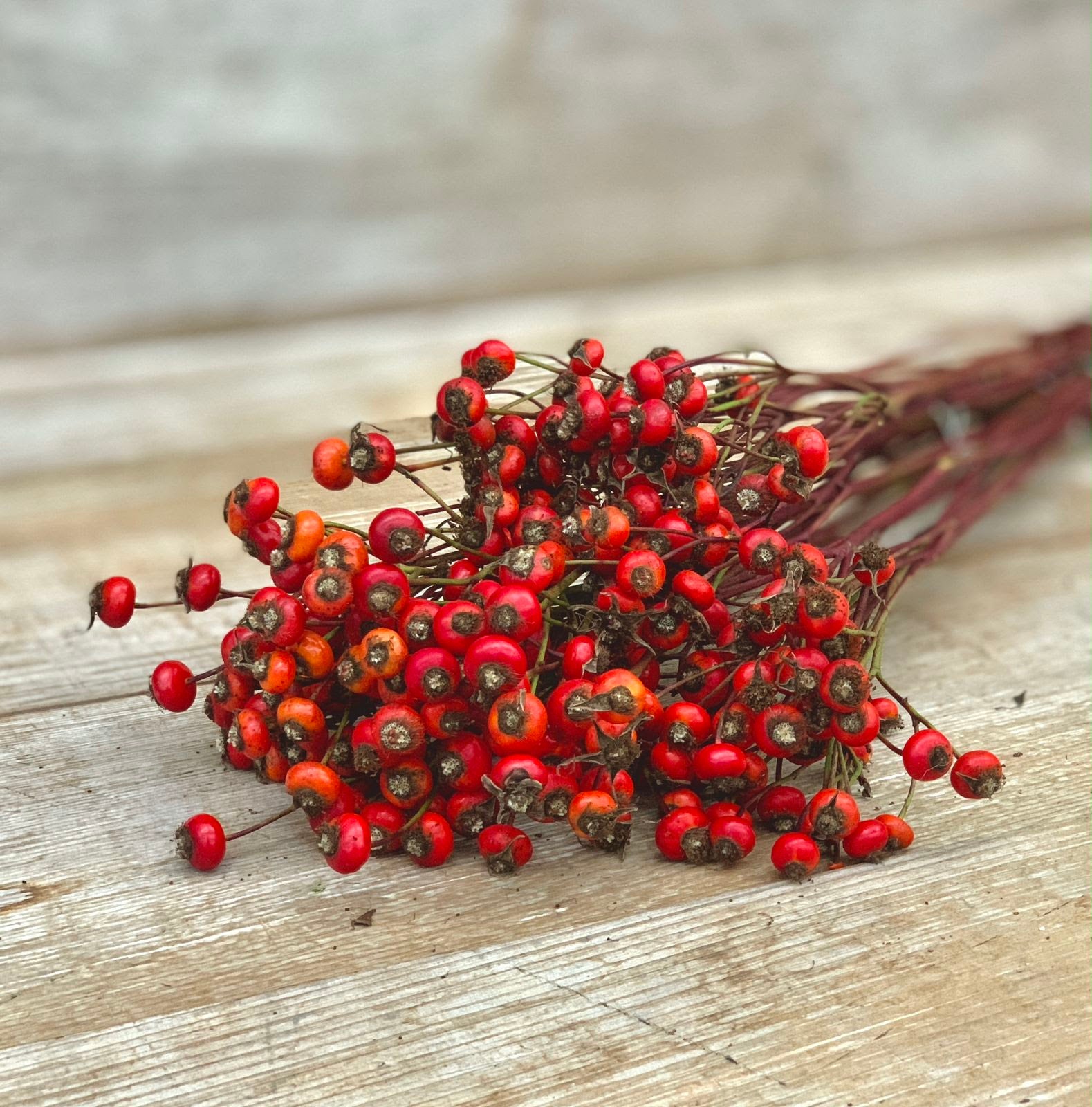 Red Rose Hips, perfect for all of your DIY holiday decorating needs. Because rose hips freeze well and maintain their bright red colour once frozen, they are the holiday berry favorite at Hawthorn.